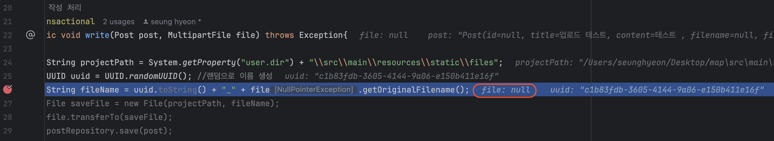 file : null 에러 확인